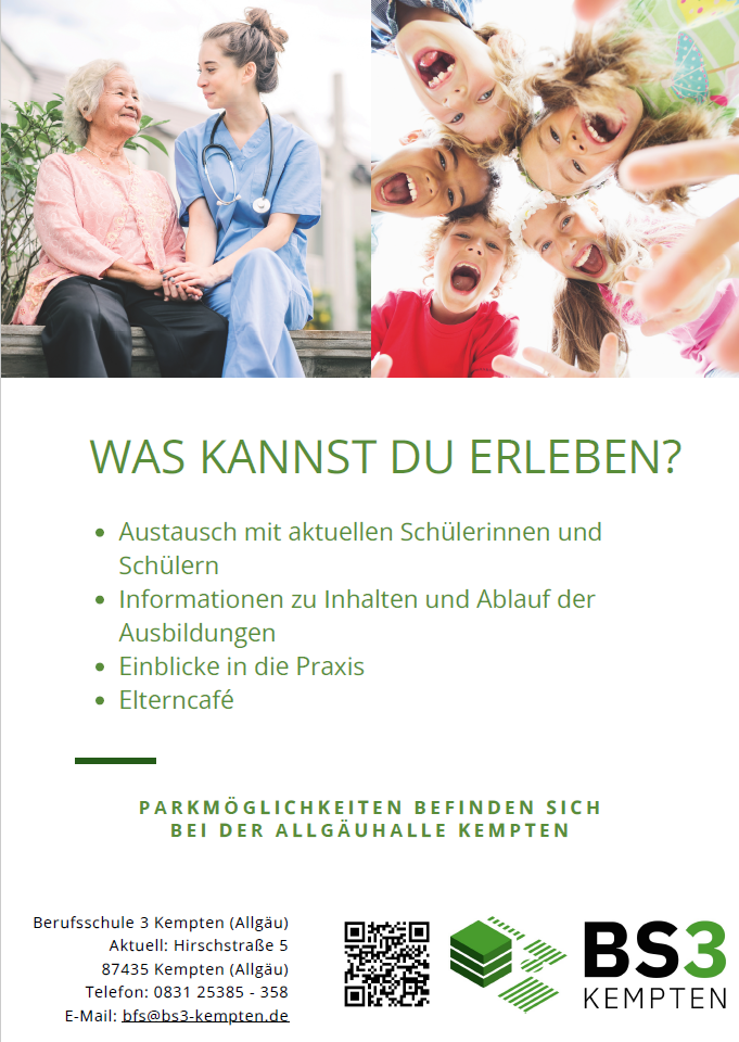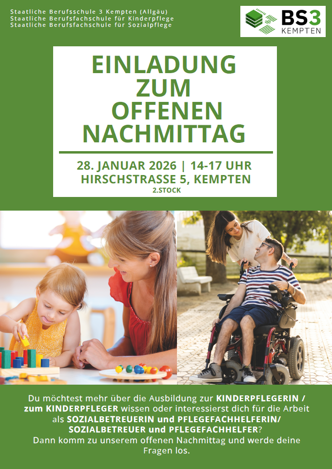 Einladung zum offenen Nachmittag Kinderpflege und Sozialpflege für Eltern und Schüler